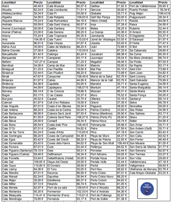 — Los servicios que comporten la entrada o la salida al aeropuerto, a los puertos dependientes de la Autoridad Portuaria o al puerto de Cala Rajada, aplicarán el pertinente suplemento. Este suplemento será de una sola aplicación por servicio.